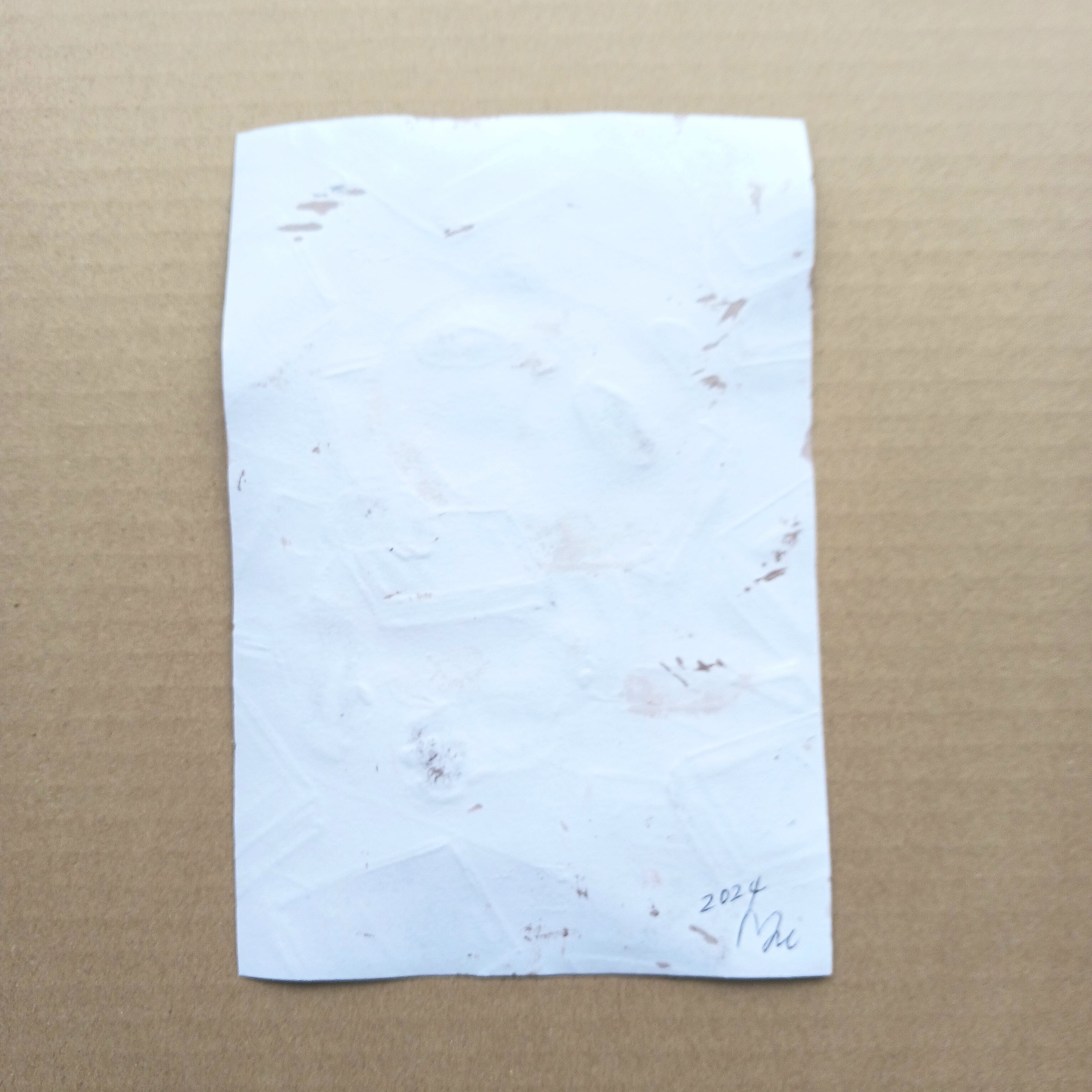 ポストカードサイズの画用紙にアクリル絵の具で描きました。