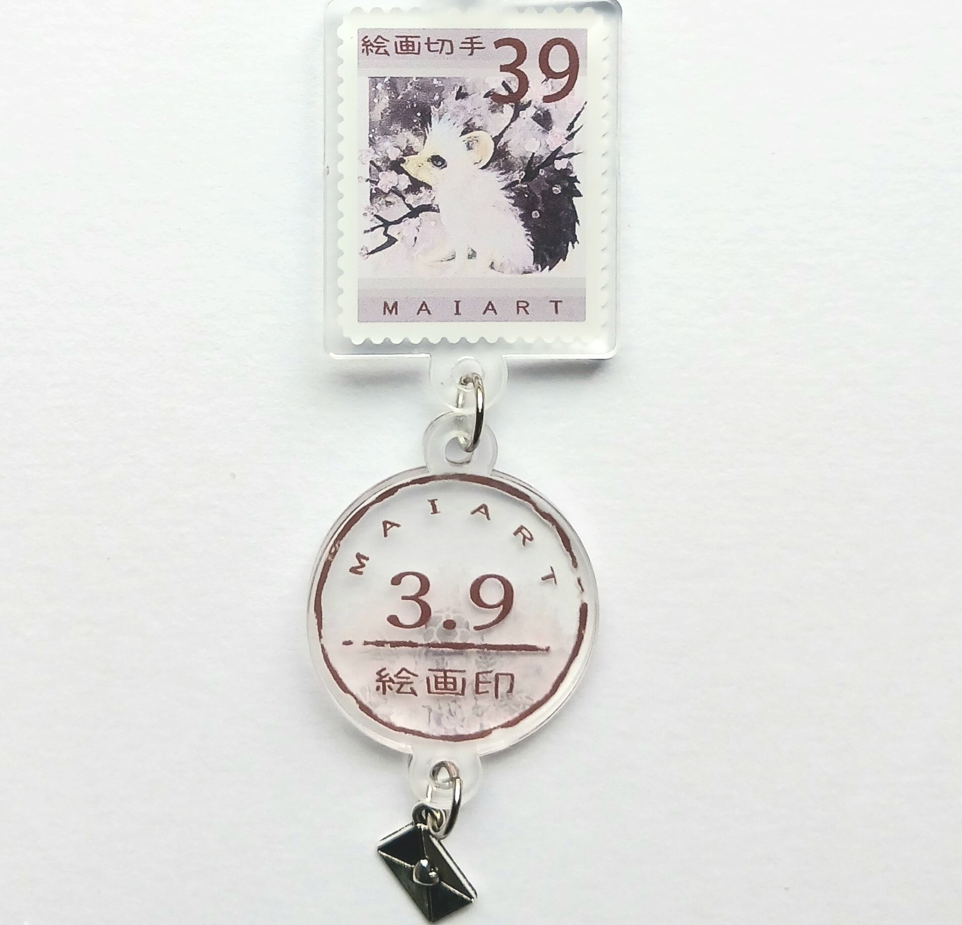 アート作品を切手風デザインしキーホルダーにしました。